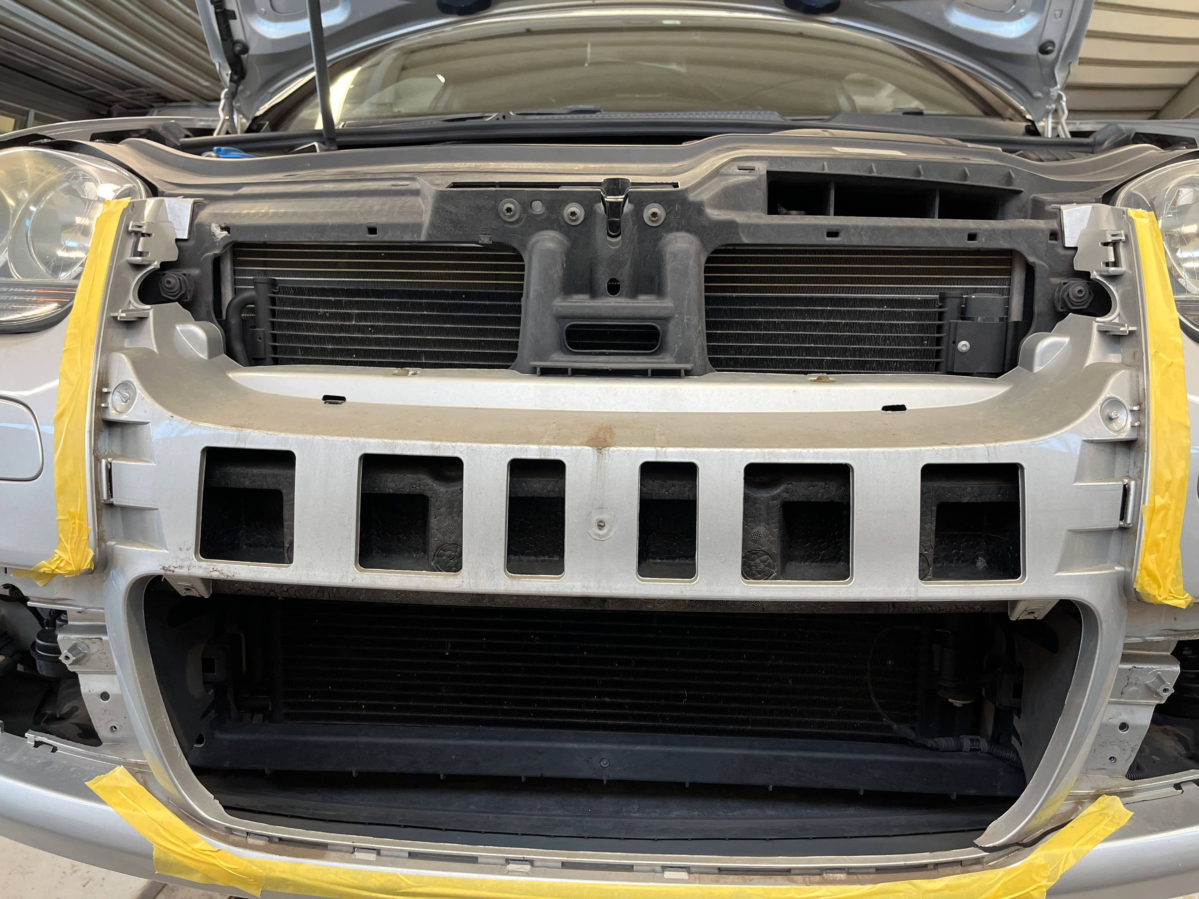 1.フロントグリルおよびアンダーカバーを取り外すしてフロントバンパーを取り外す。