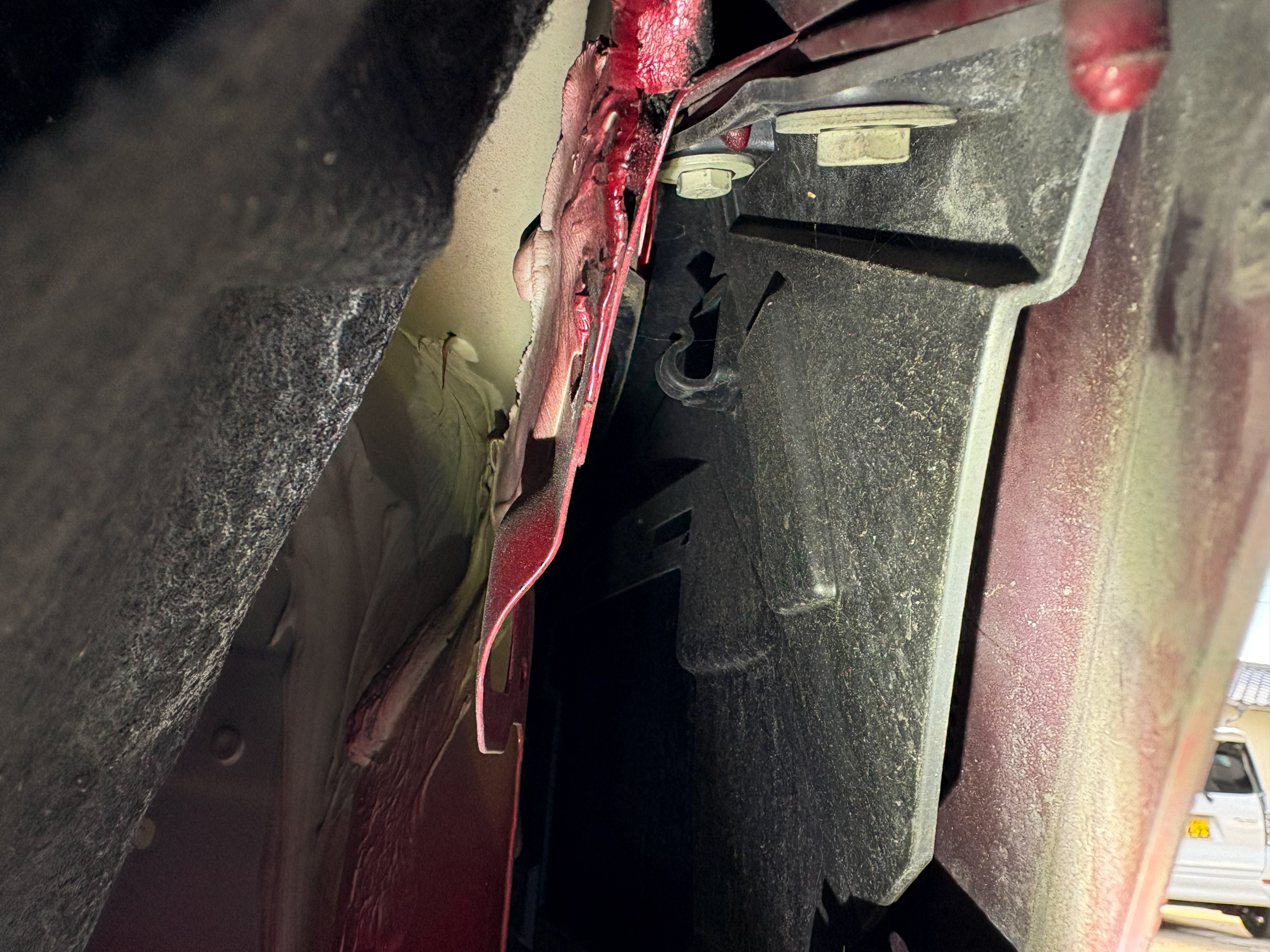 このトリムを外さないと10mmナットを3本取り外せないので、できる限り割らないよう慎重に作業した。