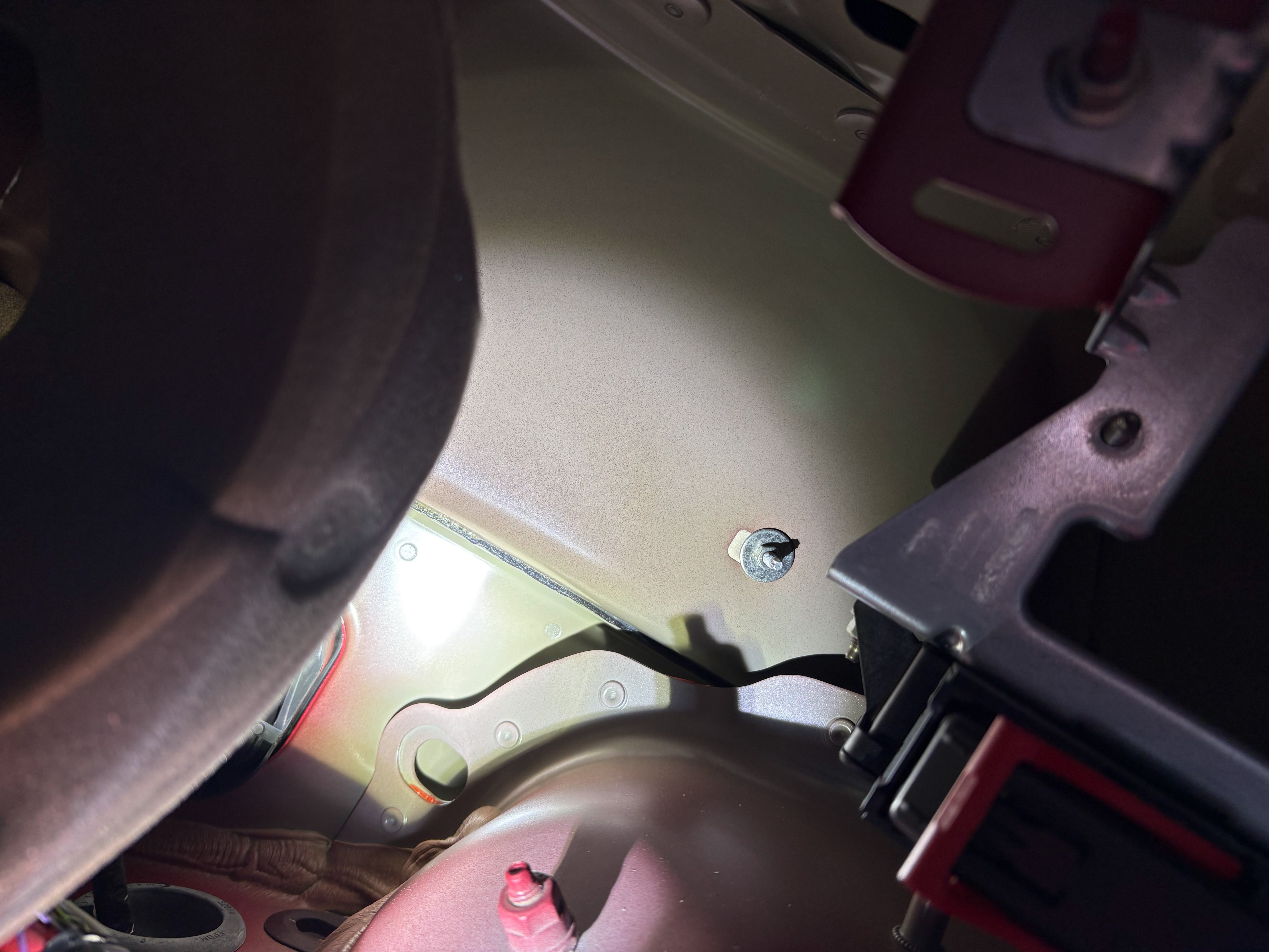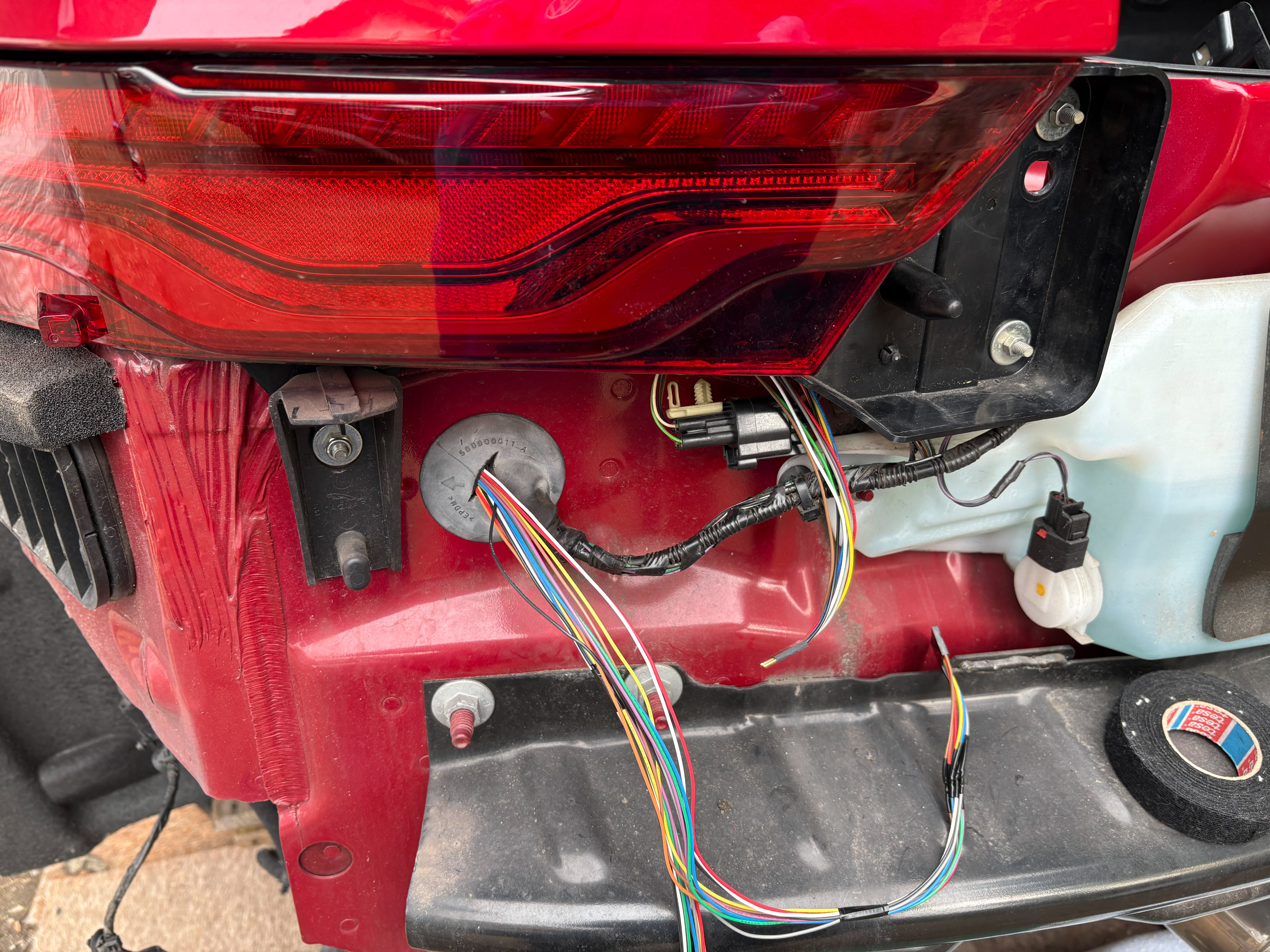 そして室内からリアウォッシャータンクへ抜けているパッキンに穴を開け、コントローラからの配線をアクセスできるようにした。
