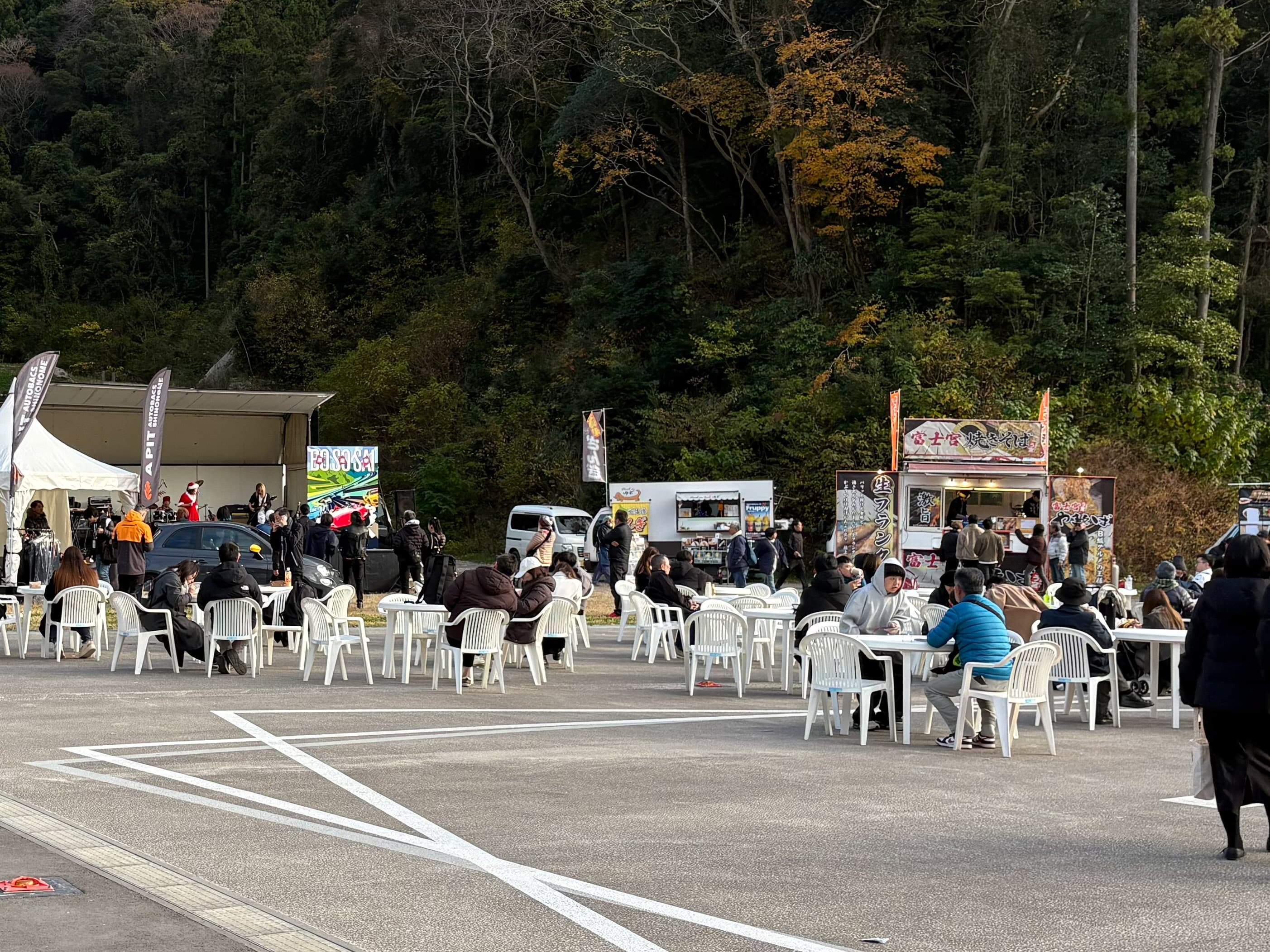 車庫付近には富士宮焼きそばや館⼭ジビエヴィルトファクトリーといったキッチンカーも併設されており、休憩しながらハイパーカーのエンジンサウンドも堪能することができた。
