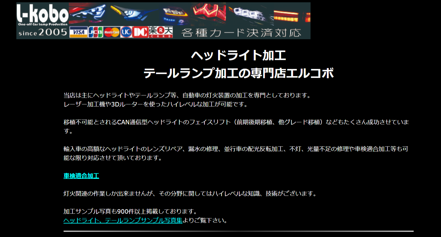 L-koboは、ヘッドライト・テールライトのカスタムや修理、移植加工を専門とする国内屈指の専門店である。