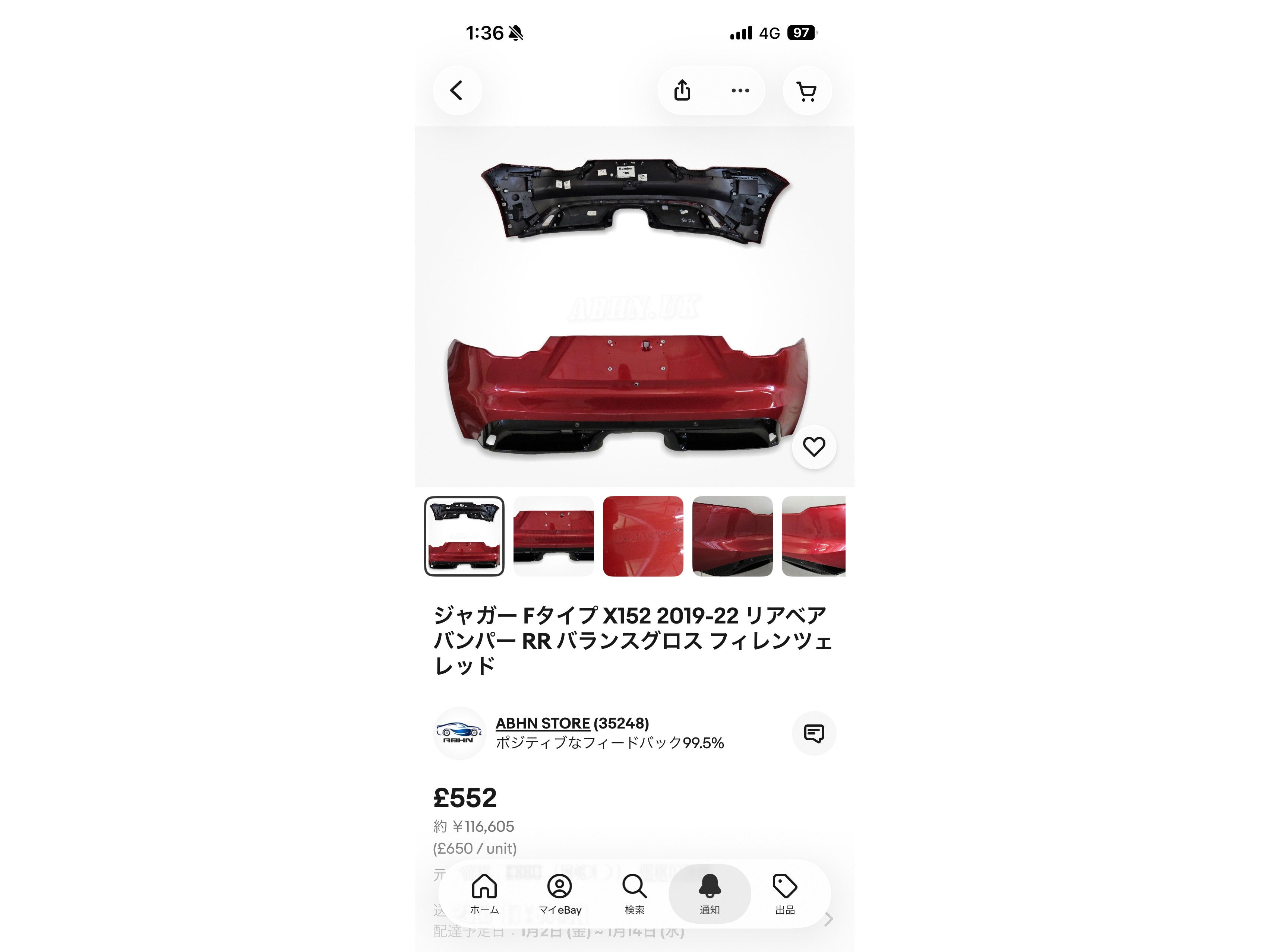 国内市場では後期型リアバンパーはほぼ流通しておらず、ヤフオクやメルカリ、部品取り車の情報も皆無に等しかった。