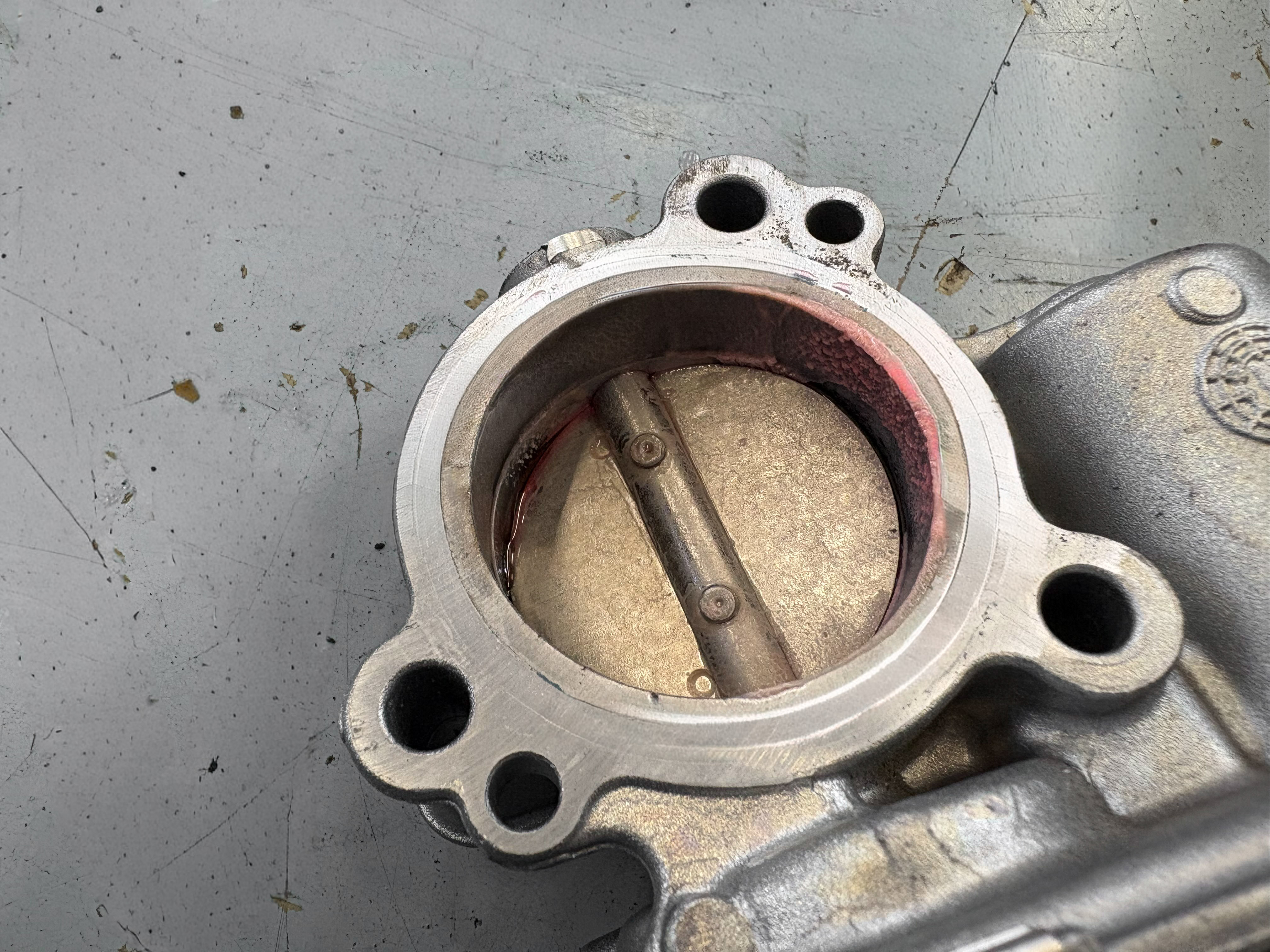またスロットルバルブ内部へのクーラント侵入の恐れがあり、電気的ショートや内部腐食(錆)の原因となる重大な不具合に直結するが比較的軽症であった為に清掃で済ますことにした。