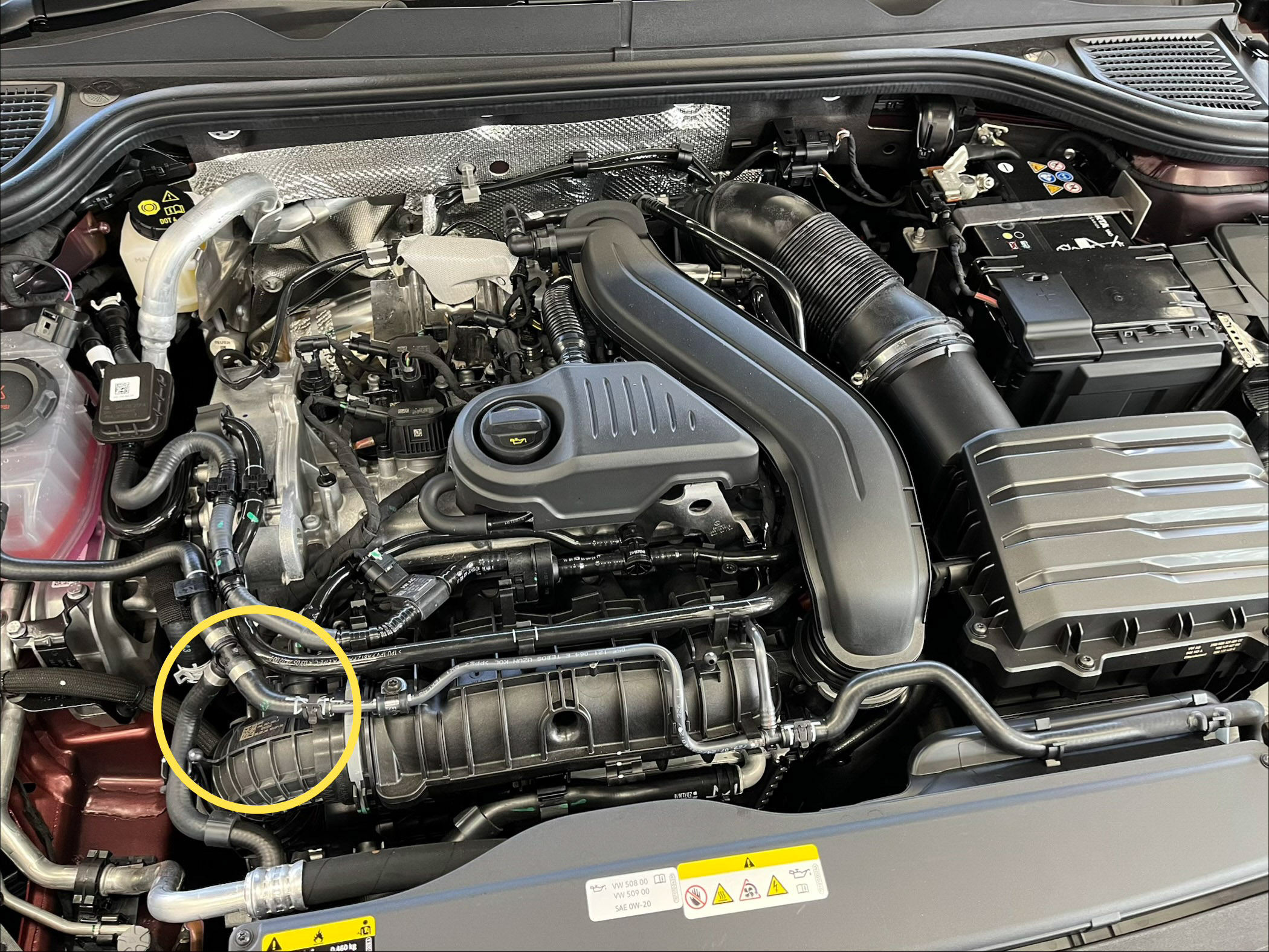 ゴルフ8、パサート、ティグアン、T-ROC(1.0L/1.5Lガソリン車)でクーラント警告灯が急増中!チャージエアクーラー内部漏れが原因か?今すぐボンネットを開けて確認を