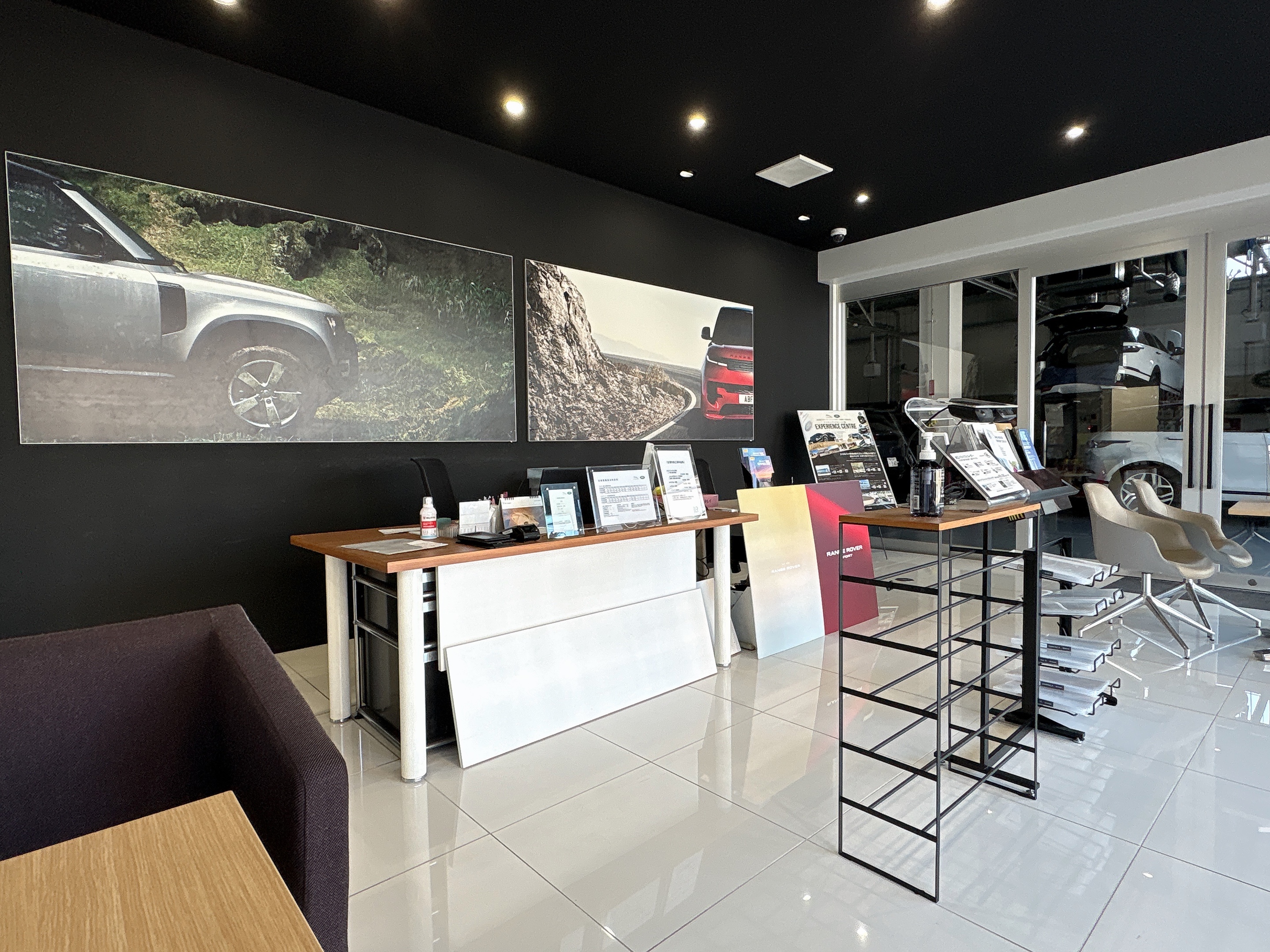 店内のショールームにはジャガー唯一のFペイスが展示されておらず何とも寂しい状況であった。