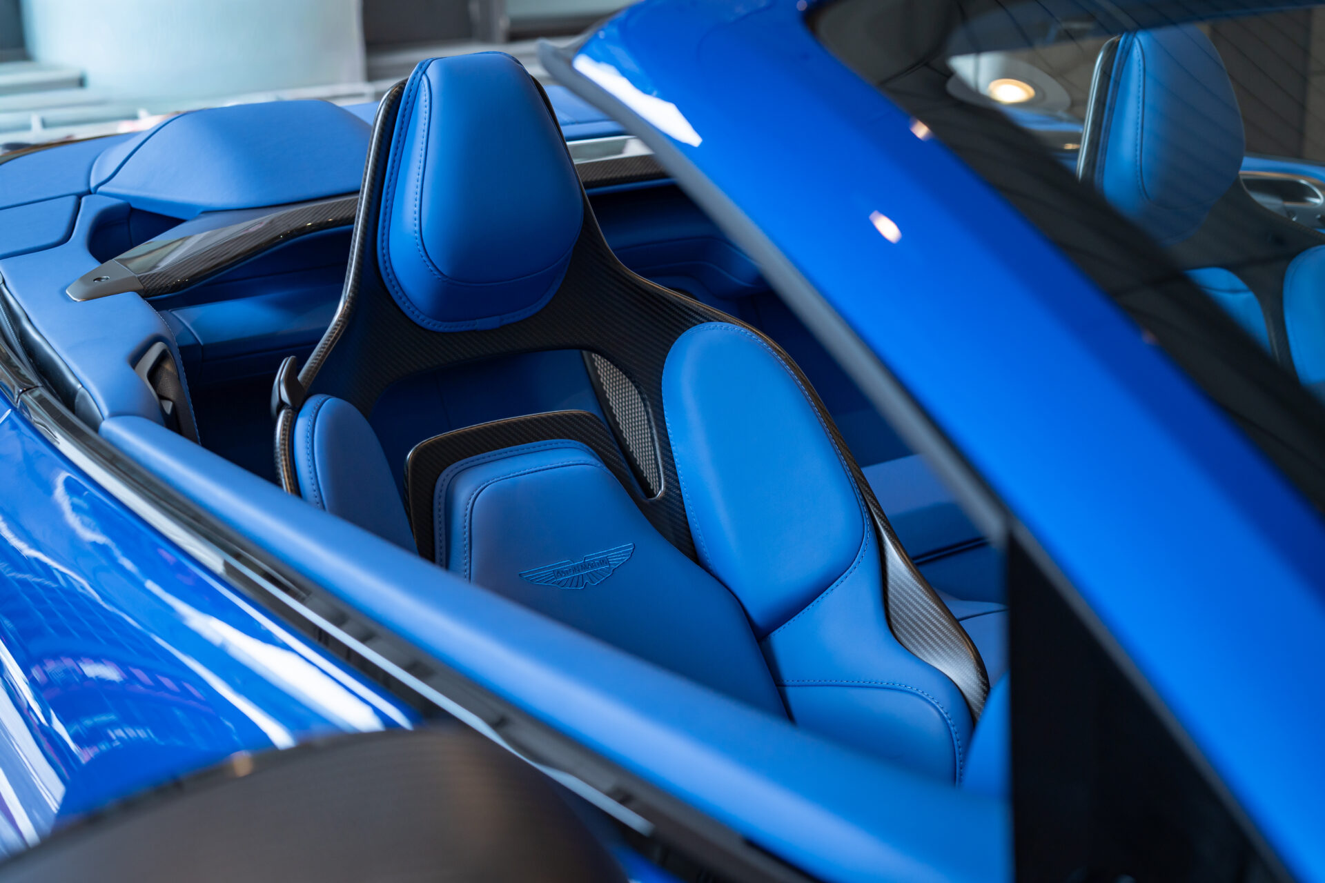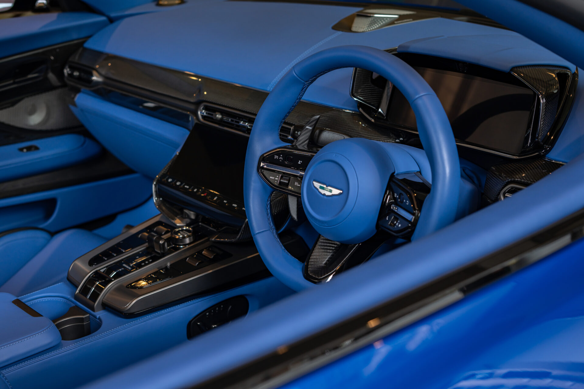 展示されていたヴァンキッシュは「Q Cote d Azur Blue」インテリアカラーで「Ion Blue」との完璧なバランスを実現。