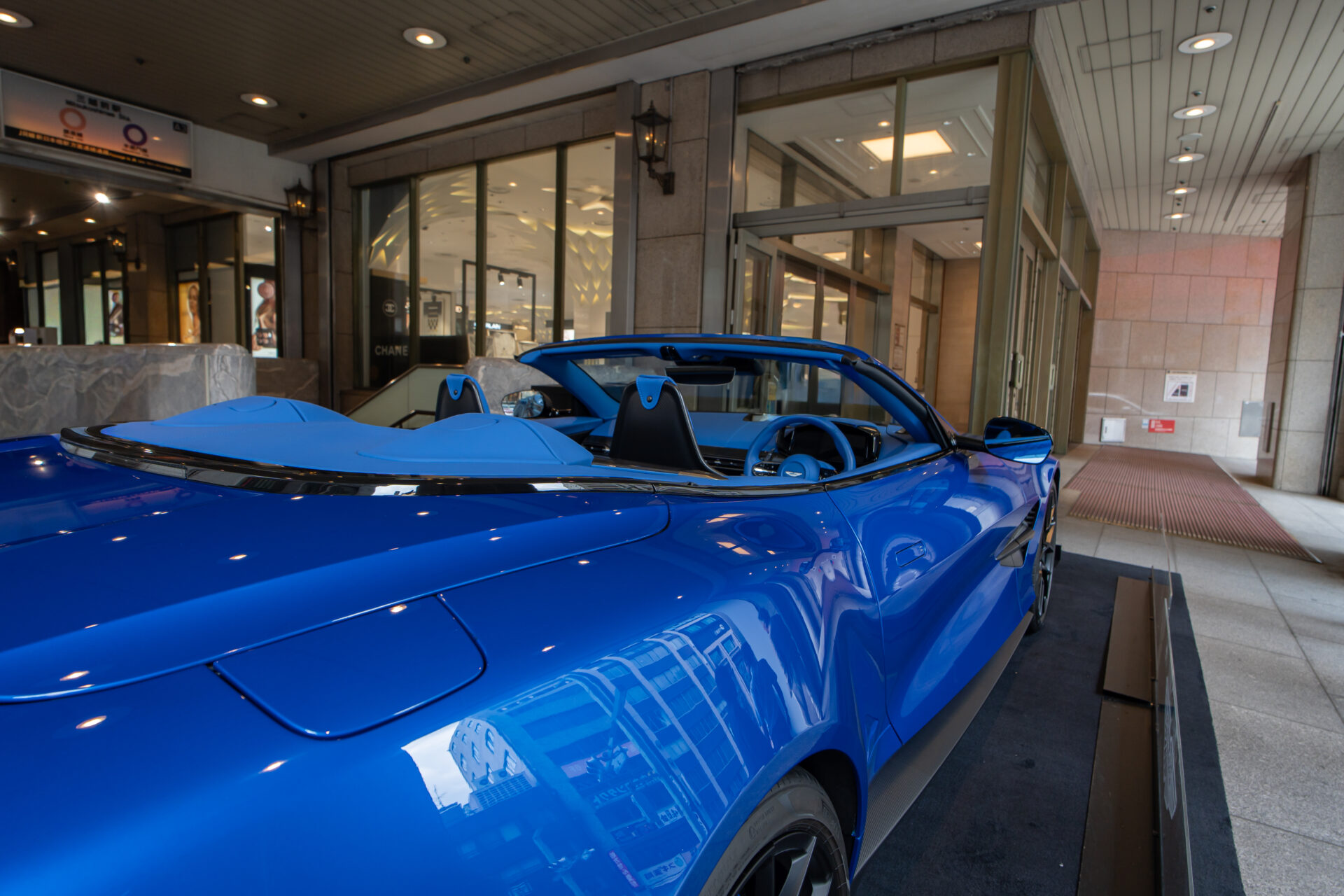 日本橋三越本店での展示されていたヴァンキッシュヴォランテは鮮やかなQ by Aston Martinの「Ion Blue」のボディカラーは英国展のテーマ「British Luxury」にマッチしていた。