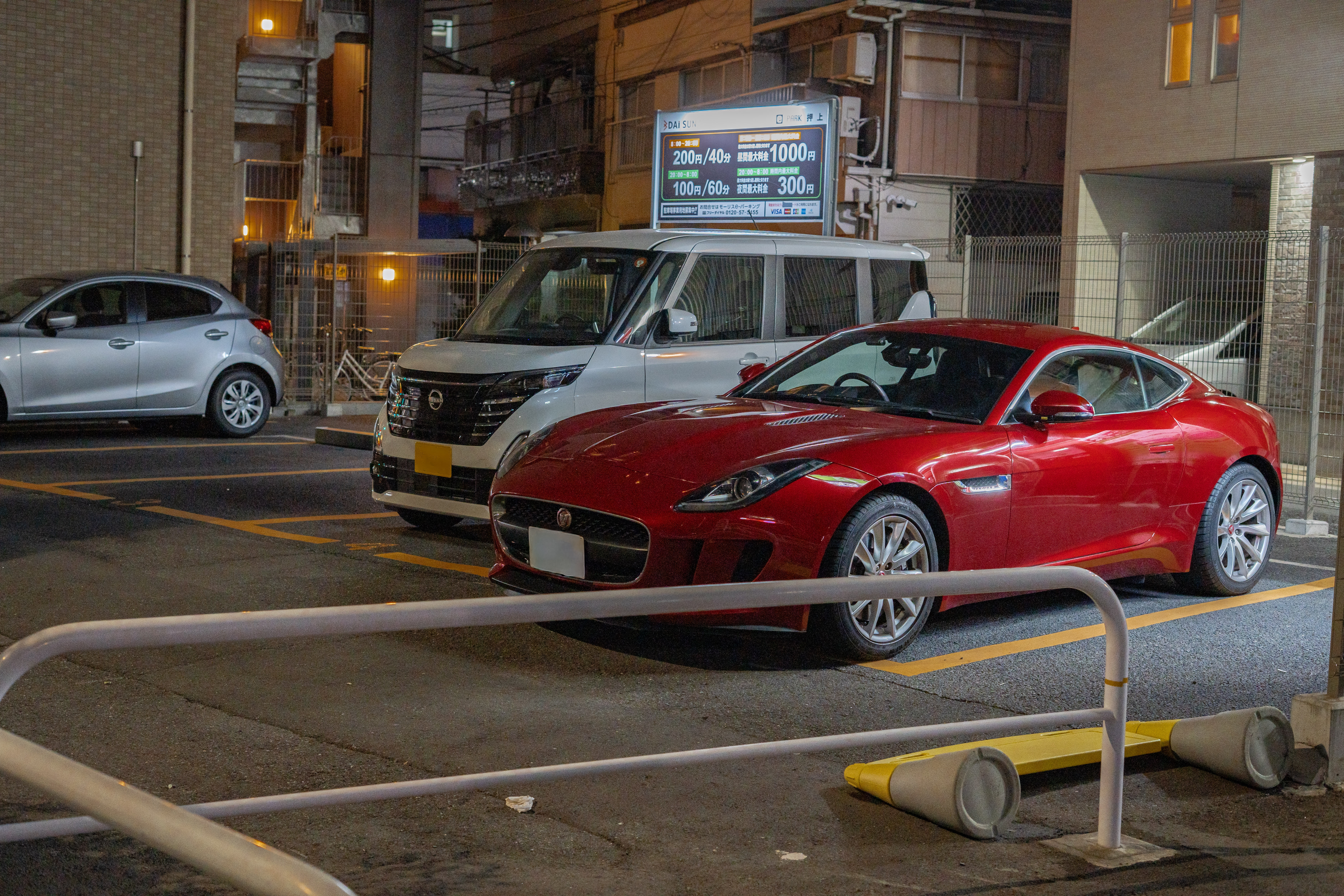駐車場は平坦でFタイプの純正車高でも問題なくアクセス可能なので下廻りをするという不安は皆無。