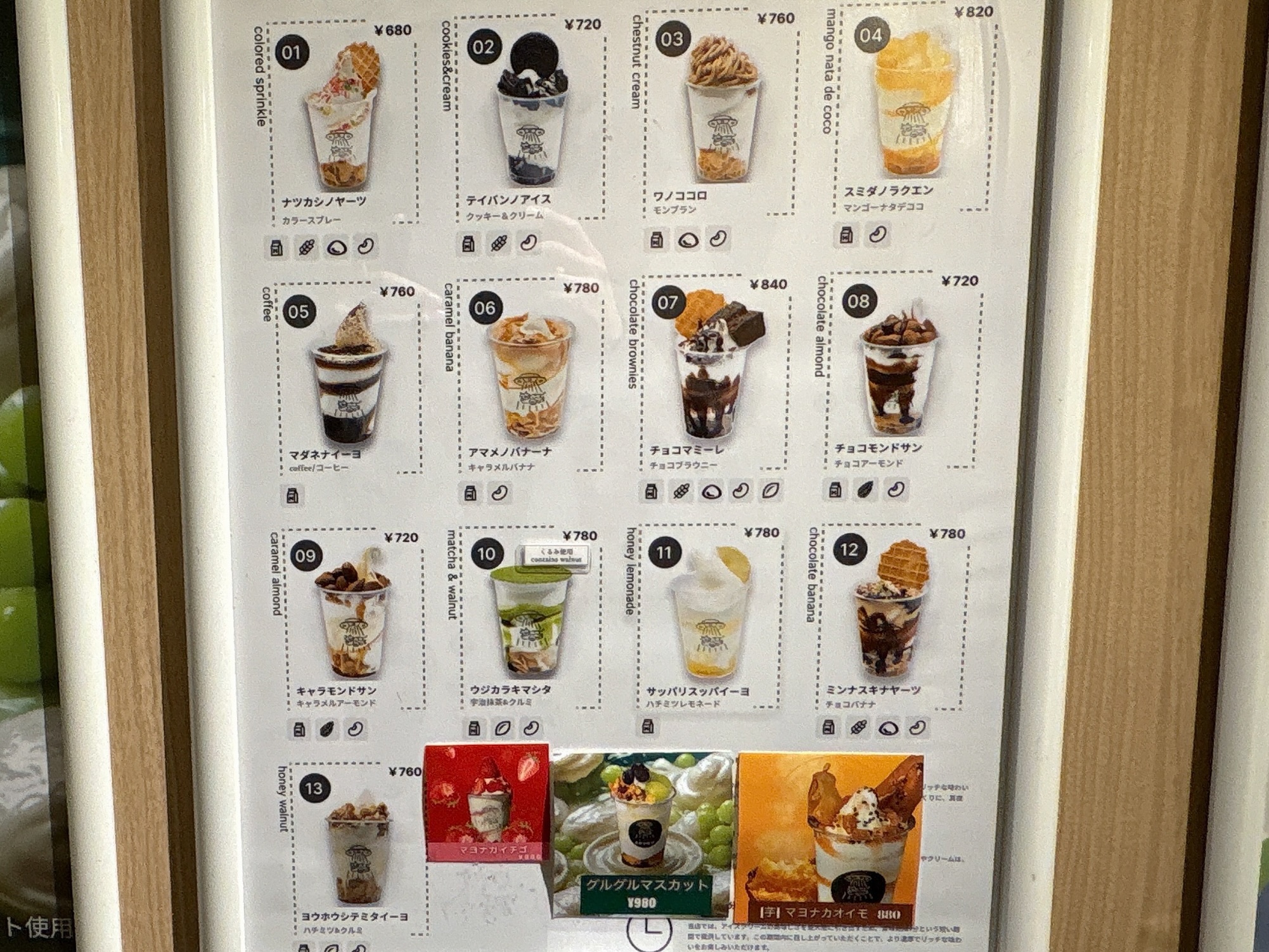 メニューは10種類以上あり、濃厚ミルクアイスをベースにトッピングが凝っている。