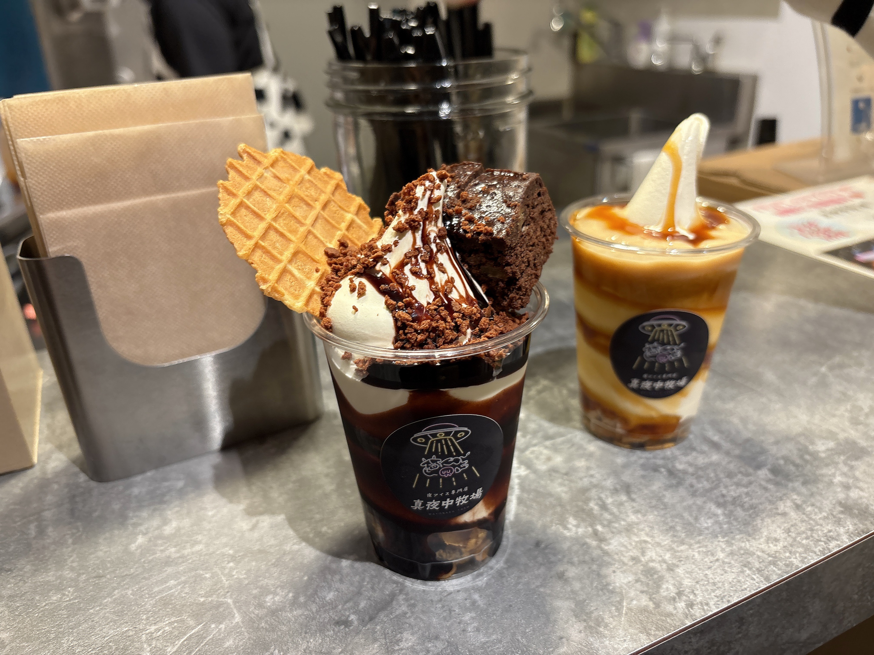 この「真夜中牧場」は、夕方から深夜まで営業するコンセプトの店で、まるで牧場で食べるような濃厚ミルクアイスが自慢。