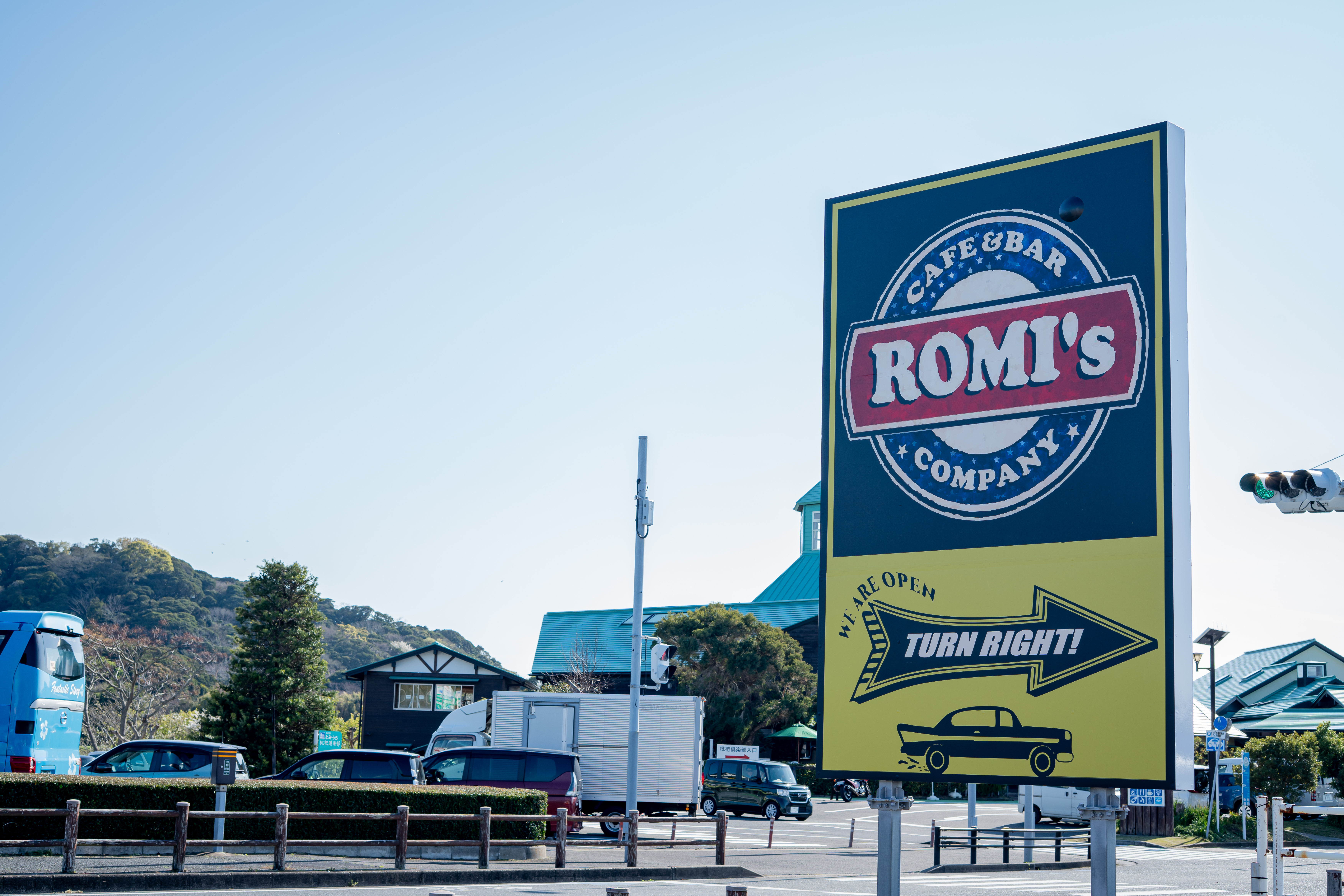 大きな「ROMI’s CAFE & BAR」の看板が目に入る。