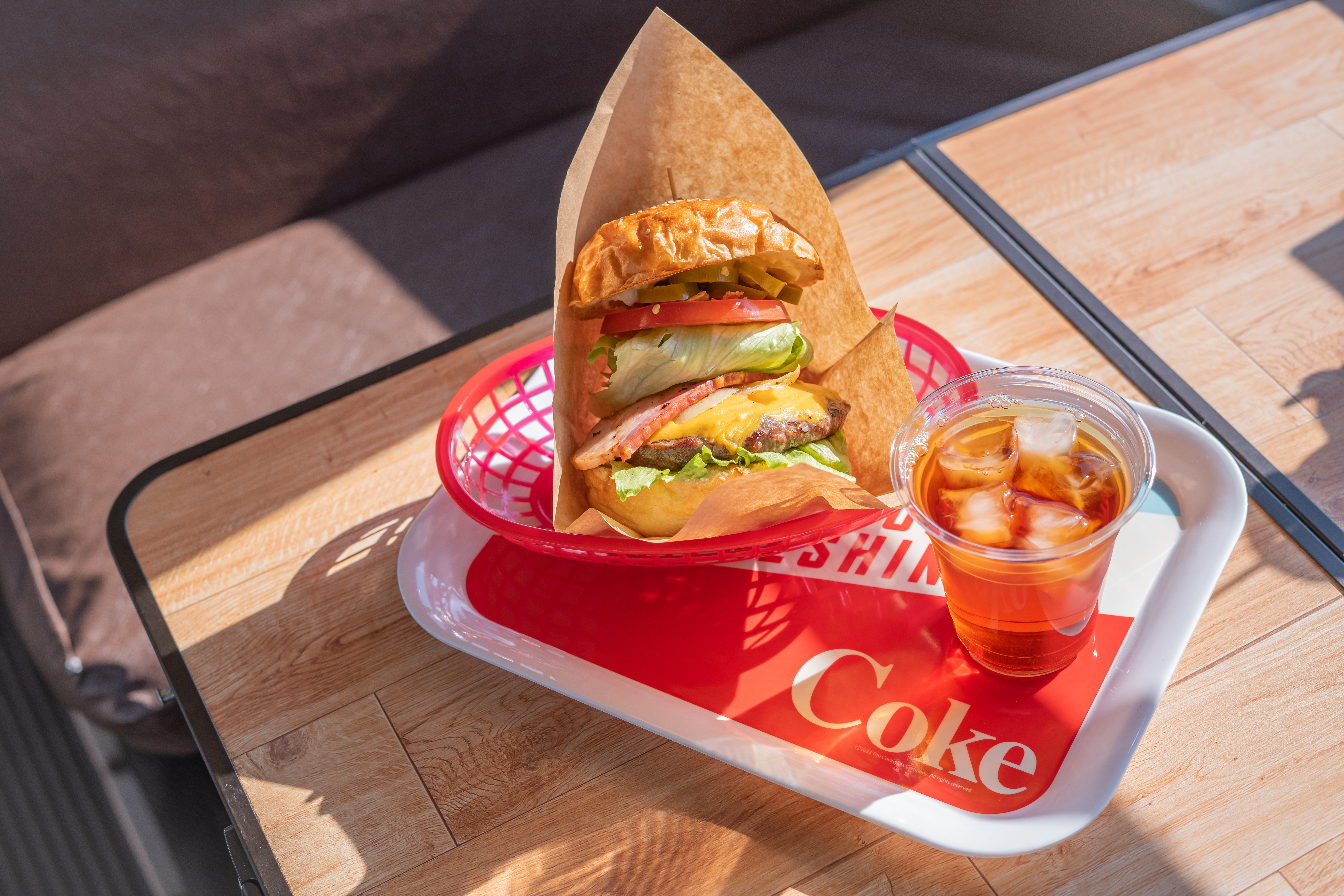 本物のアメリカンスクールバスという唯一無二の空間で、牛肉100%・酒種バンズの本格バーガーを食べる体験は、チェーン店では絶対に味わえない。