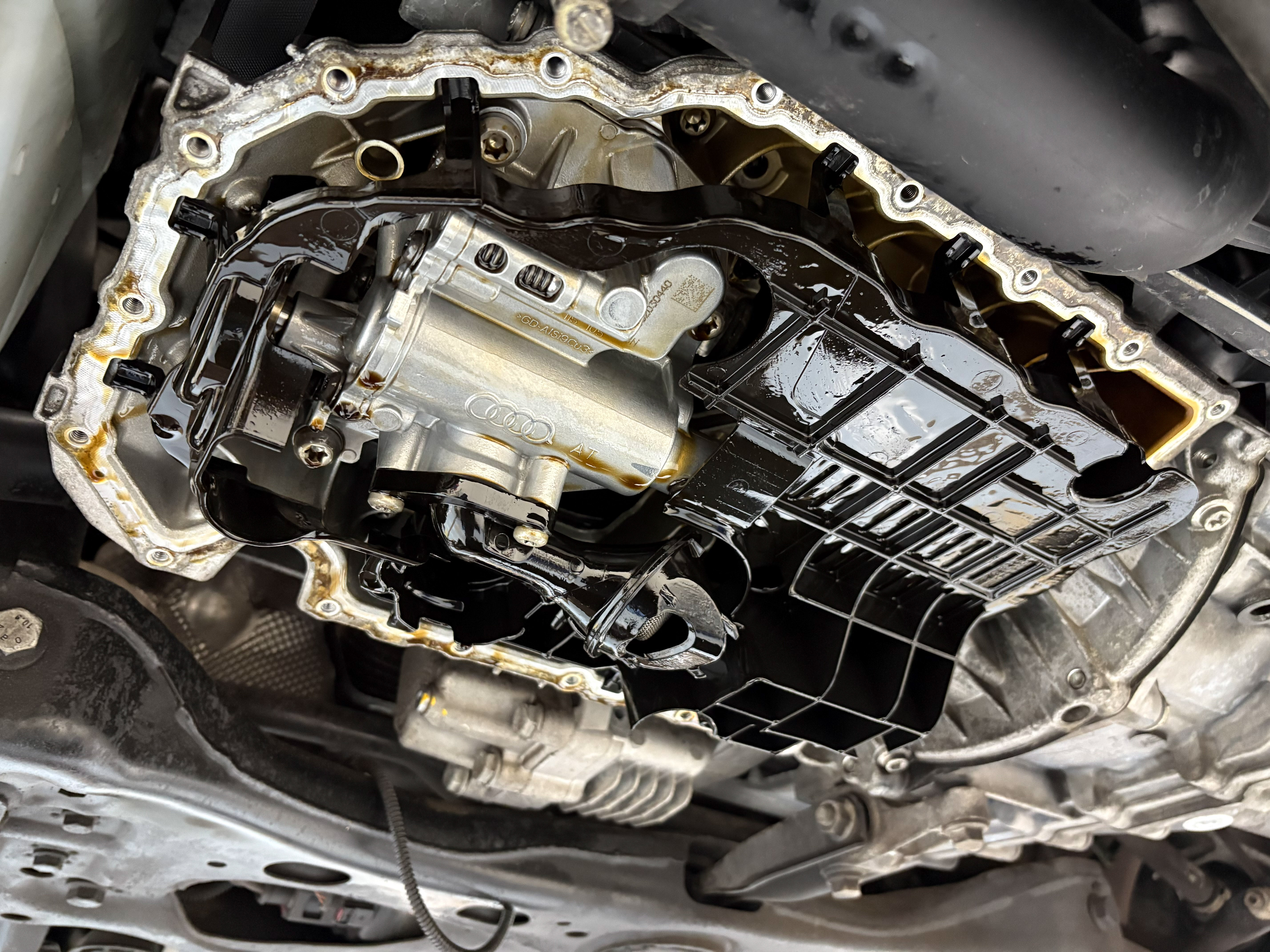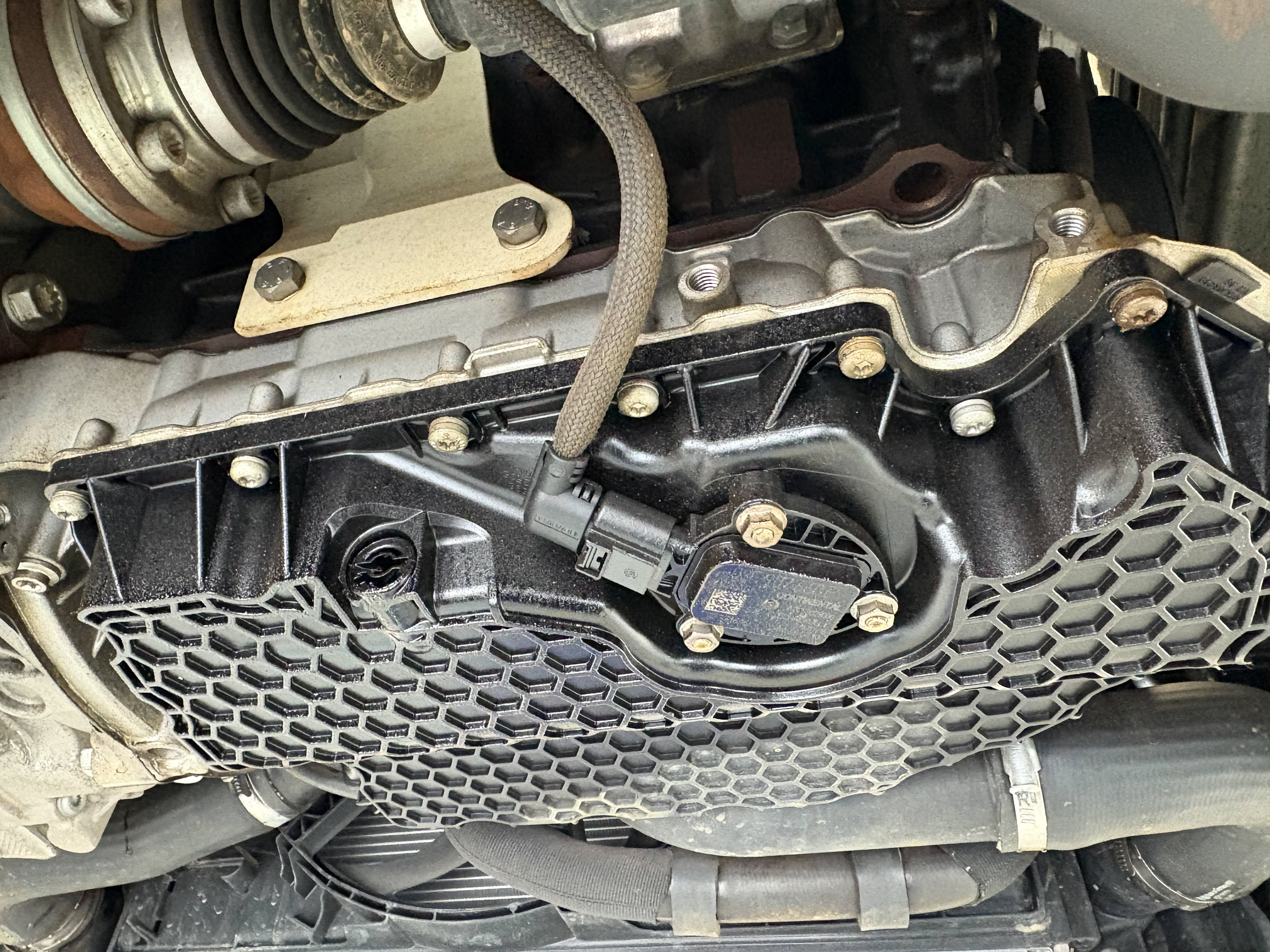 ゴルフ7や7.5 GTI/R系、アルテオン、パサート等で駐車場にオイル溜まりができたら樹脂オイルパン漏れを疑っていただきたい。