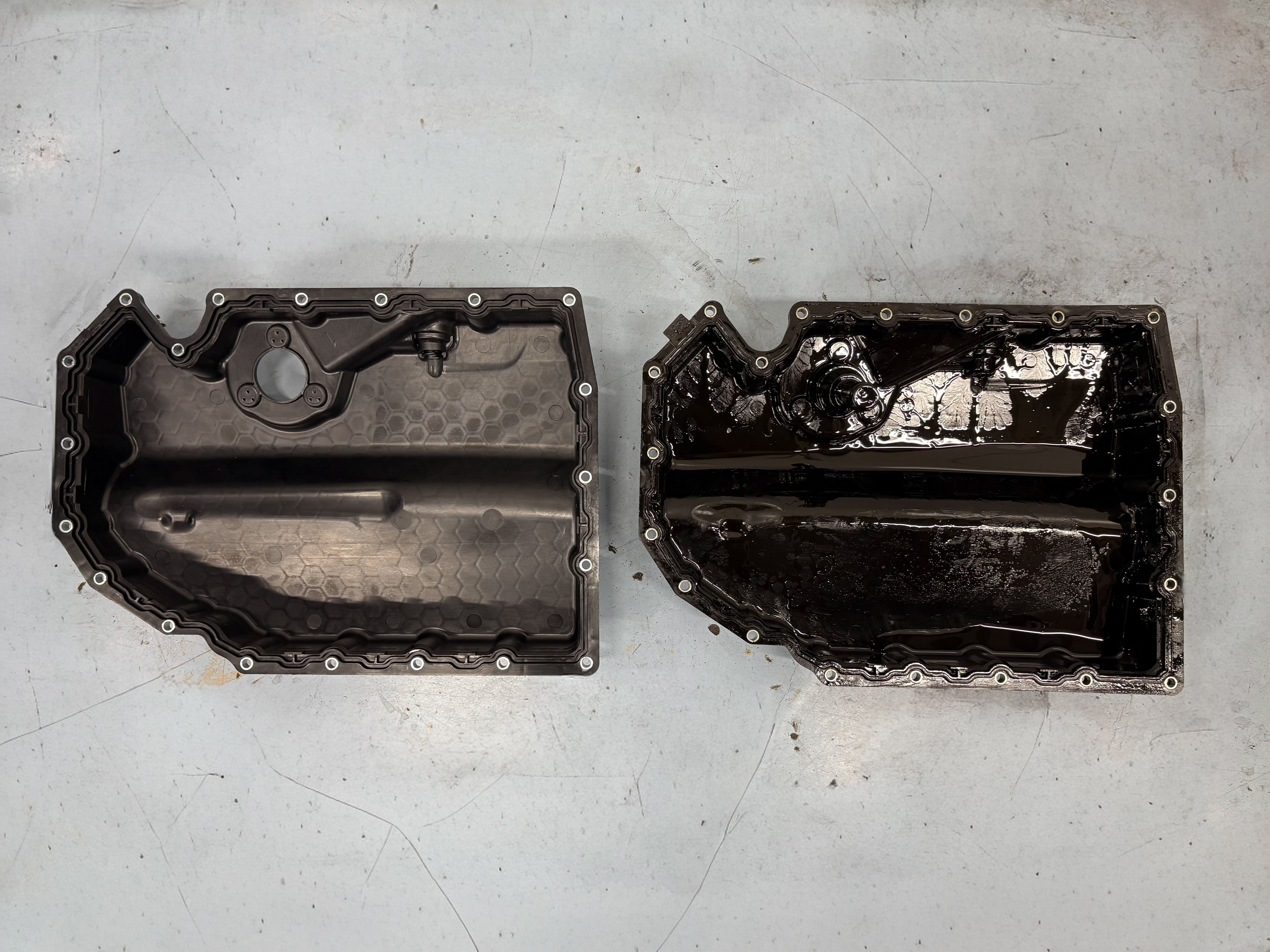 フォルクスワーゲンの2.0Lエンジンにはクーラント漏れと並んでオイル漏れが定番トラブルであるが、中でも樹脂製オイルパンの劣化・ヒビ割れによる漏れは深刻な問題となっている。